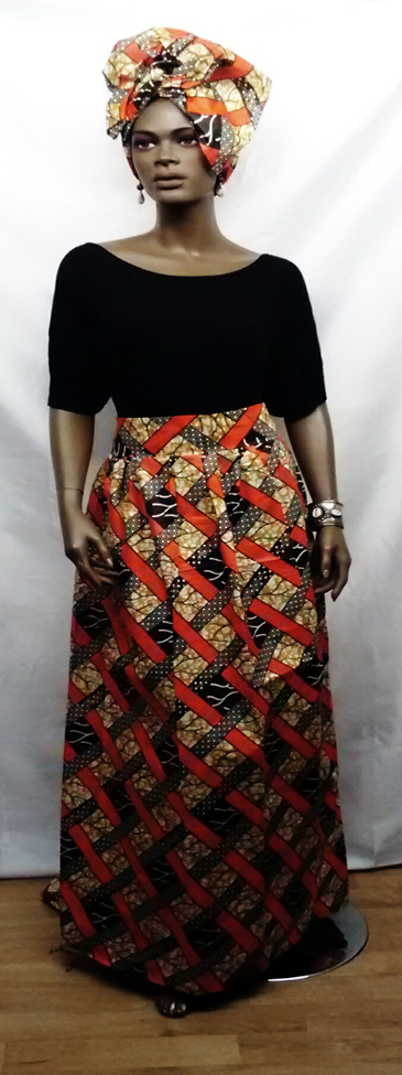Africa Skirt- African Orange Long Skirt with matching Head Wrap. New Design! Perfect for and all occasions. Dry clean or machine washable. Custom Made Items.